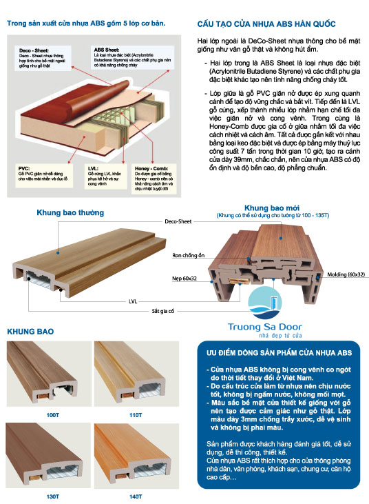CẤU TRÚC CỬA NHỰA ABS gồm 5 lớp :